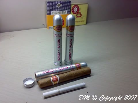 Couldn't sleep in the night and took some pics of these cigars I bought at Hong Kong airport. Made comparison with the usual Marlboro lights I'm smoking.